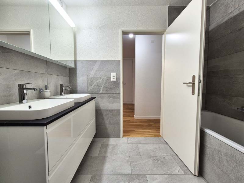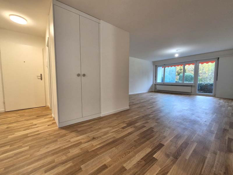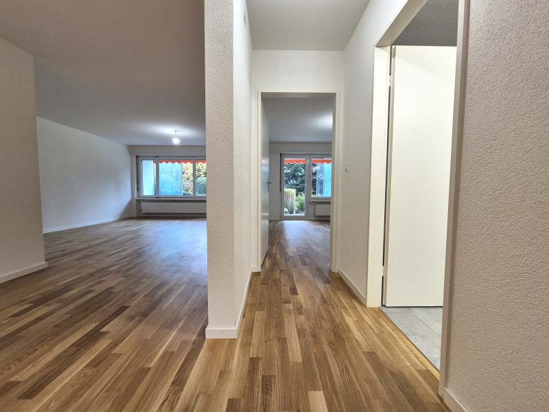 Zwischen Juli und Oktober 2024 wurde diese grosszügig geschnittene, helle 3.5-Zimmerwohnung mit Sitzplatz und Balkon umfassend saniert und steht nun zum Verkauf.